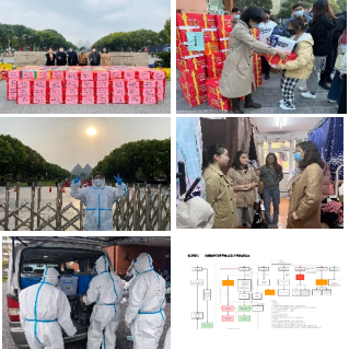 学院党委牵头织密组织体系,发挥组织引领作用,保障校园学生安全稳定。学院疫情防控领导小组下设学生管理、教学保障、安全保障、疫情报告、宣传教育、应急处置六个工作小组,工作小组成员均由党员担任,统筹做好松江和长宁两个校区的防疫工作,制定学院应急处置预案,分别针对学生宿舍、实验室等重要场所,推演学生应急防控流程并制定作战部署。作为一线指挥部,领导小组和工作小组24小时当值,最早一条疫情防控指令于当日00:17发出,随后迅速由各工作小组积极贯彻落实。党委书记朱君璇,党委副书记、院长谢红,党委副书记谢志霞,党委委员、副院长辛斌杰分别驻守校内一线,督导学生核酸检测、抗原筛查、爱心物资发放、线上课程学习、困难学生关怀、心理援助、送医配药、就业招聘等事宜。各级组织协同作战,在收到六期学生反映生活物资短缺的需求后,24小时内解决问题,将物资送达学生手中,学生纷纷在朋友圈表达感谢之情,一句“学院的爱要溢出来了吧”是对学院防疫工作最好的肯定。
