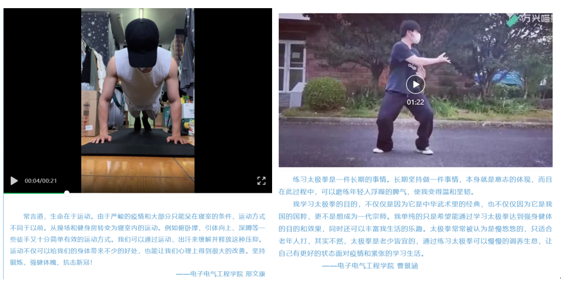 加强人文关怀,赋能心理战“疫”。封闭管理以来,电子电气工程学院通过开展疫情下的心理疏导主题活动,让同学们认识到疫情环境下产生焦虑、恐慌等情绪是正常心理反应,引导学生接纳自身情绪,帮助学生适度减压宣泄,实现学生心理健康教育全覆盖。注重分类引导,畅通心理危机转介绿色通道,努力减缓疫情给同学们所造成的社会心理影响。密切关注心理问题易发群体,畅通多维疏导途径,为需要的学生积极完成代取药、帮送药服务。同时,利用云端资源,开展形式多样的心理健康教育活动,如“与心相约,爱在程园”心里摄影大赛、“我秀我健康,一起向未来”脱口秀大赛、“重温经典”线上观影活动、“共战疫情,强身健体”健身vlog活动等,让同学们在学习之余舒缓心情、放松解压,以提升心理健康素养,保持理性平和、积极向上的心理状态。