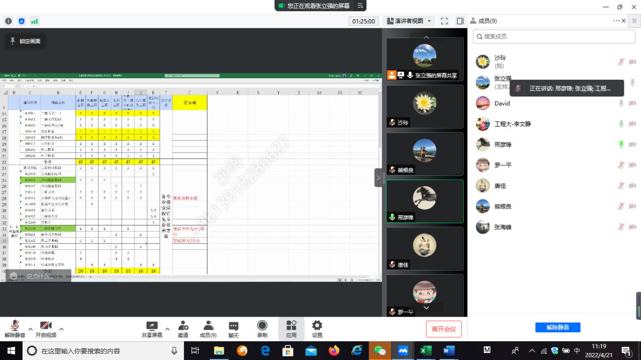 各专业负责人对各专业所在平台课一一讨论,并重点讨论专业学位培养方案特点,包括课程设置、教学过程、专业实践等环节,以及所设置的课程是否与工程认证要求相符等问题,并落实了后续工作的推进。