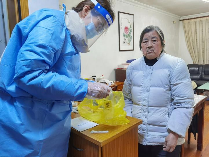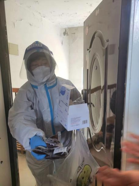 薛玉佩同志,勇敢地冲在离核酸检测医生最近,也是最危险的志愿者岗位,还参与物资上门发放、上门抗原检测等工作,体现出了一名资深党员的风骨。他说:“人是辛苦的,心是温暖的”。