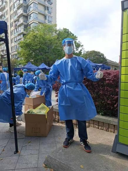 刘诺同志,作为在2020年疫情期间就冒着巨大危险,冲锋在抗疫一线的“老兵”,各个岗位的志愿者服务对他来说驾轻就熟,也习惯性地冲在前面,在秩序维持、物资发放工作岗位。累点他不在乎,他说要与上海“共克时艰”。