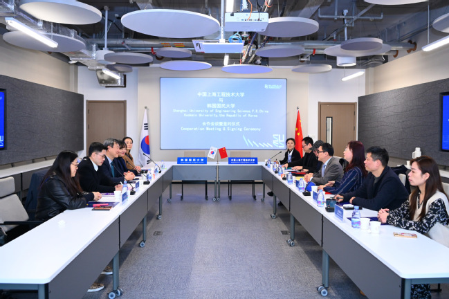 1月12日,韩国国民大学校长郑胜列一行访问我校。校长娄永琪在长宁校区产教融合大楼会见来访嘉宾,双方举行校级合作会谈暨教育合作谅解备忘录签约仪式。国际合作与交流处、设计学院(筹)负责人及相关教授参加会谈。