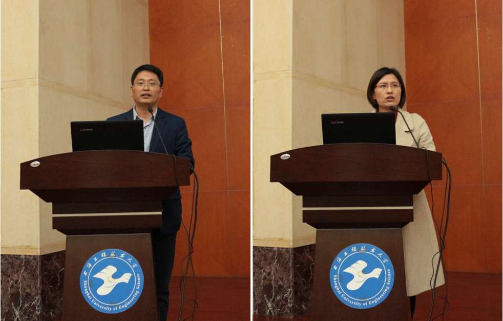 国际交流处副处长张忠魁老师和学生工作部(处)副部(处)长万慧琳老师分别作了发言,张忠魁老师分别介绍了国际化产学合作教育的意义、开展路径和相关资助政策办法;万慧琳老师分别介绍了国化际产学合作教育的重要性、平台设置以及境外产学合作教育助学金。