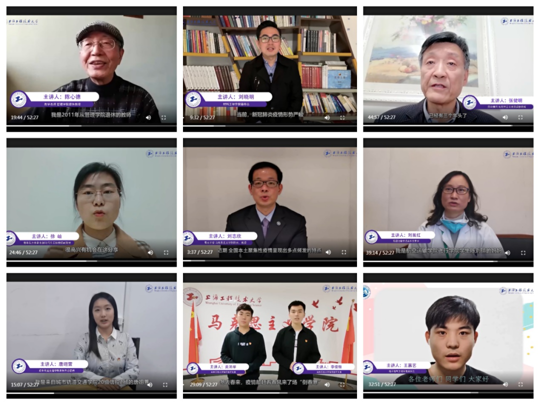 增设“抗疫精神”专题课程,充分发挥学科专业优势,加强抗疫期间思想政治教育主渠道引领,把伟大抗疫精神化为前进伟力,不断凝聚抗疫正能量。马克思主义学院与各职能部门和二级单位协同合作,匠心制作云端“疫情就是命令,坚持就是胜利”疫情防控形势与政策课,将师生同舟共济、守望相助的抗疫实践汇聚成为工程大最生动的思政教材。