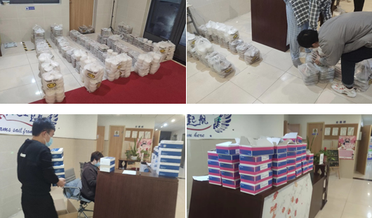 为关怀经济困难的同学,学校特地准备了相关抗疫物资,如医用口罩、洗手液、免洗手消毒液等,也包含许多应急食物。支部书记赵老师积极组织支部党员配合席老师完成电子电气工程学院困难生的物资分发工作,解决同学们的燃眉之急。