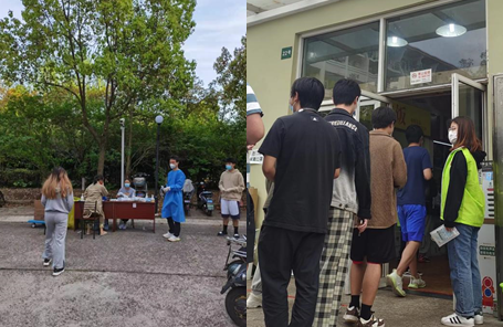 为配合每天的抗原自测工作,党员志愿者也会在领取抗原检测盒后的第一时间配送到每一间宿舍。在餐食和抗原配送中时常会遇到餐食不足、检测盒失效、缺少棉签等情况,志愿者之间会快速相互协调。抗疫当前,所有人都积极配合、快速响应、高效执行。