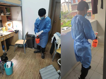 本支部的每一位党员牢记初心与使命,全心全意为校园内的师生服务。有党员身穿医用防护服,严格维持核酸采样点的秩序,引导人群保持合理距离,有序排队,确保核酸采样工作安全高效进行;有党员身穿志愿者服,饭点时间站在食堂门口维持秩序,细心、耐心、热心宣传防疫知识和人流疏导,保证师生井然有序地用餐;还有党员参与宿舍消毒工作,换上防护服,穿梭于各个宿舍之间,对同学们的宿舍进行消毒杀菌,为打赢疫情防控阻击战而助力。