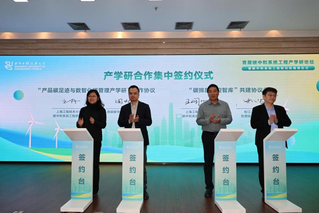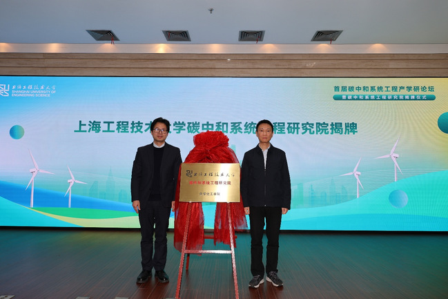会上,碳中和系统工程研究院正式揭牌成立。该研究院的成立标志着上海工程技术大学在服务国家“双碳”战略方面迈出实质性步伐,将为区域绿色低碳转型搭建起集理论研究、技术开发、成果转化与人才培养于一体的高水平创新平台。