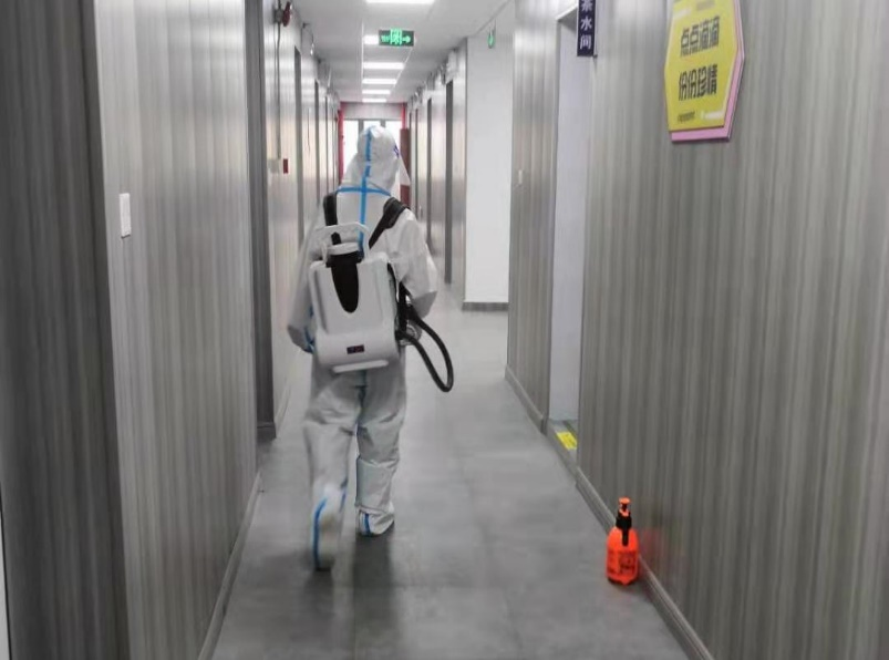 高职学院、高级技校对公共环境大清消,后勤保障服务中心组织专业人员对教学楼2、3号楼(职教大楼)、宿舍楼7号、11号楼、综合楼南北裙楼、技能楼1至3楼、图文信息中心进行清消,集中对人员居住和活动的公共区域进行全面清洁和消杀。
