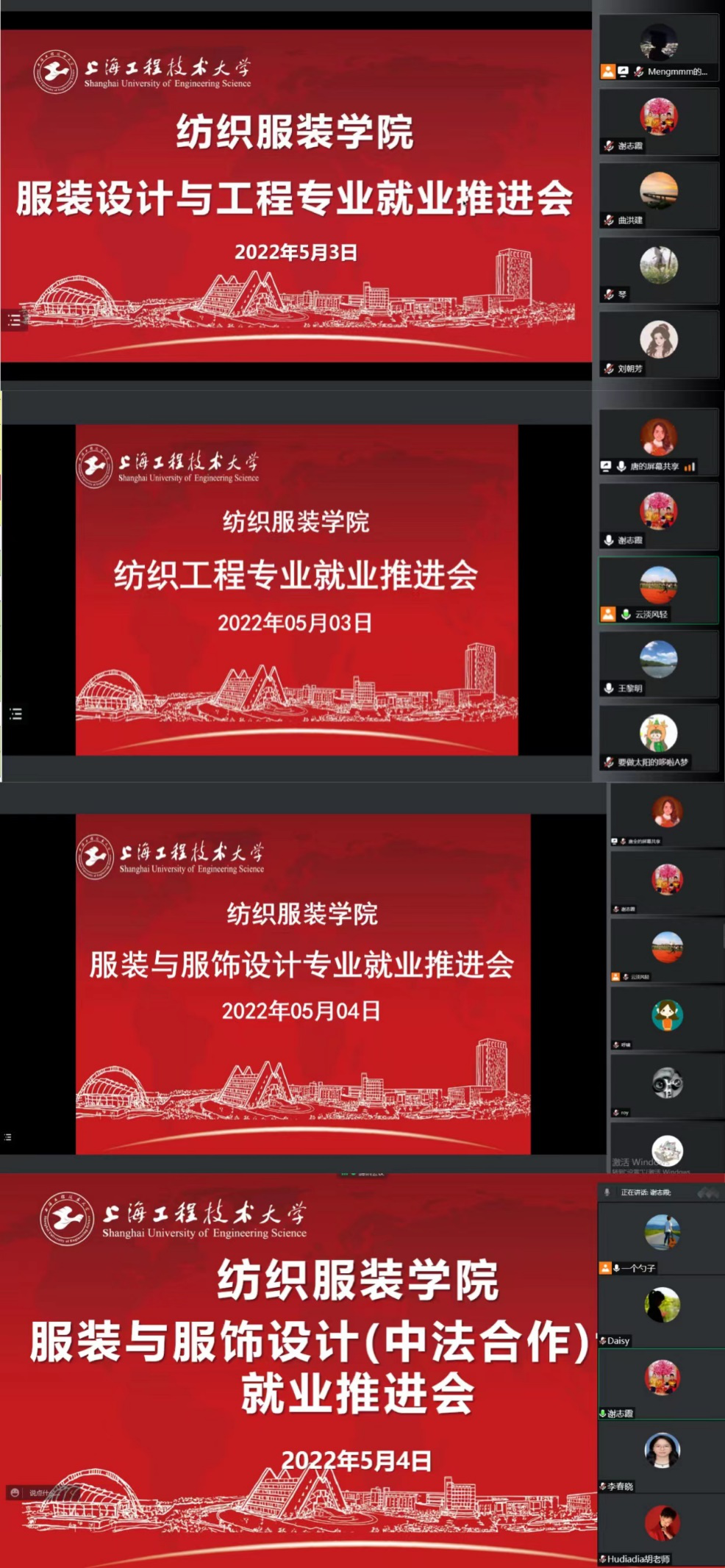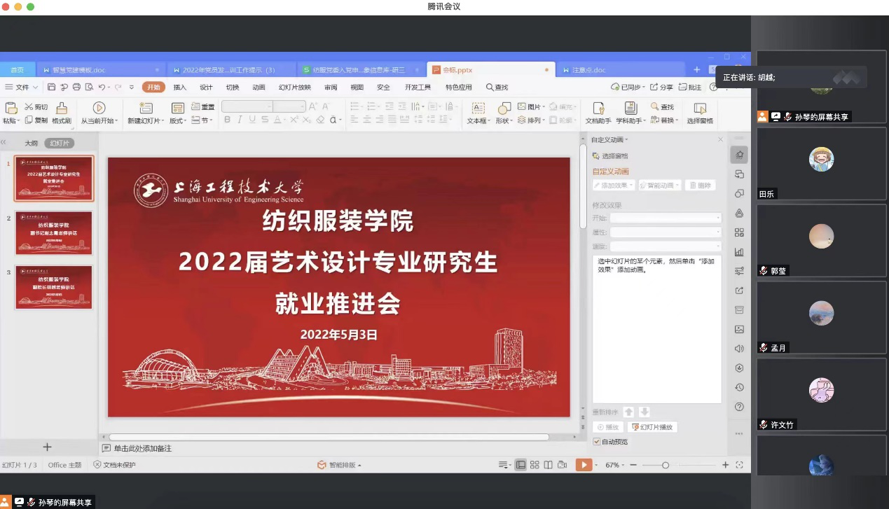 纺织服装学院于5月3日-4日针对研究生和本科生的不同学科、不同专业,分类别召开就业推进会,各学科方向带头人、系室负责人、就业辅导员、毕业班辅导员、导师、班主任参加会议,会议由纺织服装学院党委副书记谢志霞主持。