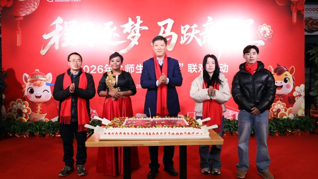 新春的欢庆在全场洋溢,李江与四名学生代表共同切开“马到工程”迎春贺岁蛋糕,启幕联欢盛会。香甜的蛋糕承载着新春美好期许,师生们一同分享这份年味里的甜蜜与温暖,在欢声笑语中凝聚同心,共迎新春。