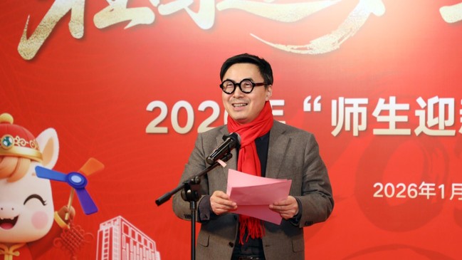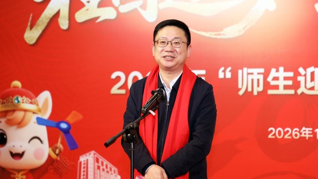 娄永琪代表学校向莅临指导的市教委领导及全体师生致以新春祝福。他介绍了学校2025年里程碑式的发展成就,指出学校正坚定按照“一年调姿、三年入轨、十年建成”的路径,全力创建具有鲜明产业特色的世界一流应用创新型大学。2026年,学校将坚持重服务强贡献,深化人才培养改革,优化校园服务保障,推动各项战略目标落地,增加全校师生的获得感和幸福感,在奔向“世界一流”的征程中,跑出上工程人的风采。