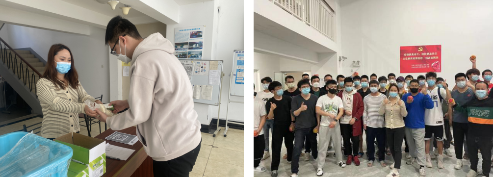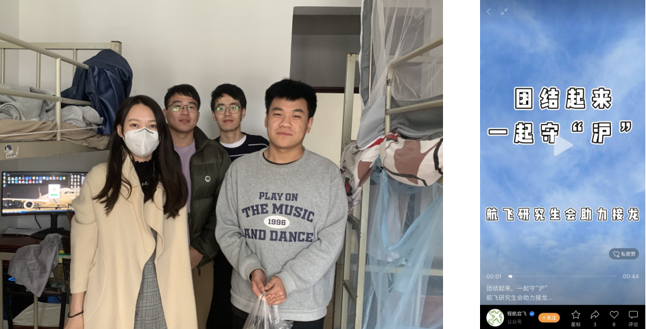 疫情期间,六期驻楼辅导员、航空运输学院李希茜始终保证工作与抗疫两不误。联合学院研究生会和研究生党支部学生骨干力量,拍摄“团结起来,一起守 ‘沪’”接龙短视频。受制于严格的防疫要求,社区物资保障,尤其是学生群体的基本生活物资,如餐食、饮水等会遭遇不少障碍,这就要求社区制定严密的运行秩序。李茜希老师与党小组共同完善运行秩序的诸多细节,力求高效稳定。李茜希老师时常与宿管、志愿者负责人亲切交谈,及时解决学生们楼道安全、物资缺口、核酸检测秩序等实际问题,并鼓励同学们打起精神,以饱满的心态共克时艰。