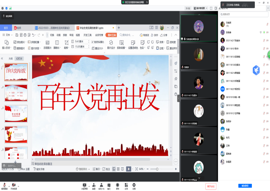 支部书记张艳春老师以“百年大党再出发”为主题讲授党课,通过领学习近平总书记讲话原文对毕业生党员进行了一次离校教育。党课分为四部分:学史明理、学史崇德、学史增信、学史力行。支部党员就学习内容发表了感想。