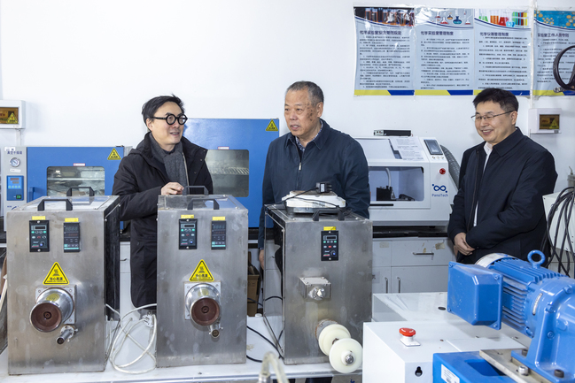 娄永琪在看望各部处、学院的同时,前往“何梁何利奖”获得者肖长发教授团队实验室,与肖教授亲切交流。他勉励团队继续发挥高水平团队示范引领作用,勇攀科研高峰,并号召全校教职员工学习肖教授“大先生”风范,扎实做好教学科研、人才培养与社会服务各项工作,持续提升办学水平与核心竞争力,加快推动学校建设产业特色鲜明、世界一流的应用创新型大学进程。