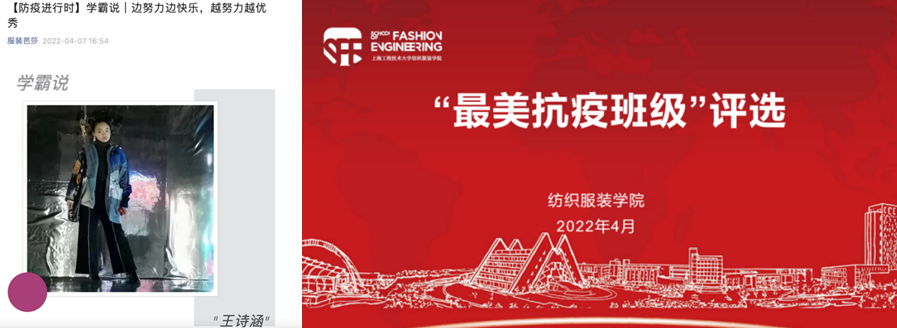 为统筹推进疫情防控期间学生思想政治教育工作,做好疫情防控期间学生教育管理工作,丰富学生线上学习教育活动,做到“思政教育不断线”,纺织服装学院全体师生积极响应学校号召,共同开展了“云”上思政,“疫”样精彩系列活动。