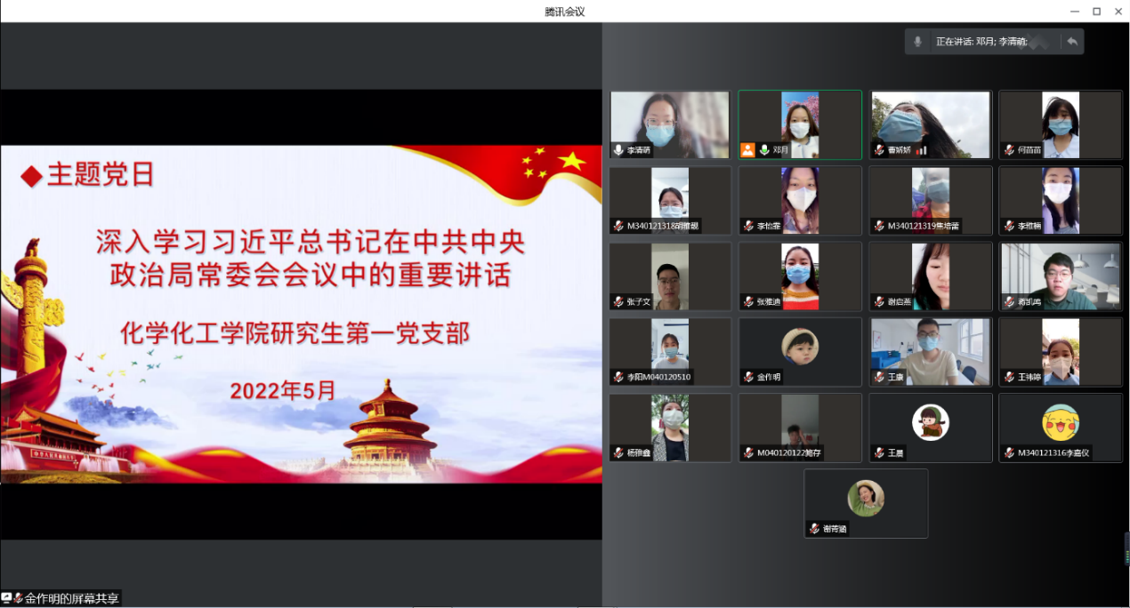 与会教师开展了热烈的交流。化学化工学院党委此前以党支部为单位,组织全体党员以自学和集中学习相结合的方式,学习了习近平总书记的重要讲话精神。大家纷纷表示,在疫情攻坚清零的关键时期,习近平总书记的讲话让我们非常振奋和鼓舞,我们要进一步统一思想,坚定信念,毫不动摇坚持“动态清零”总方针,坚决打赢大上海保卫战!