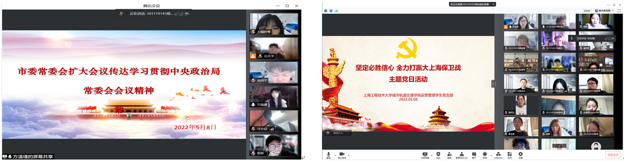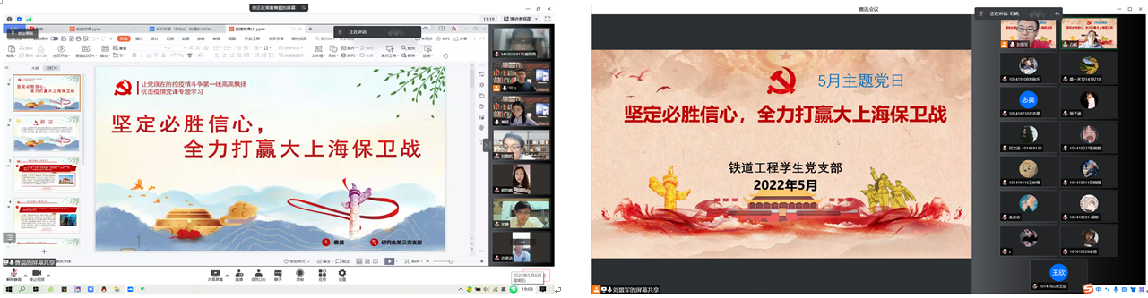为深入学习贯彻习近平总书记在中共中央政治局常委会会议上的重要讲话精神,严格落实上级党委关于疫情防控工作的要求和部署。城市轨道交通学院党委统一部署,在5月6日-8日,组织下属十个师生党支部积极开展“坚定必胜信心,全力打赢大上海保卫战”主题党日活动,认真学习领会习近平总书记重要讲话精神,按照党中央、国务院决策部署,在市委的坚强领导下,坚持“动态清零”总方针不动摇,坚定必胜信心。