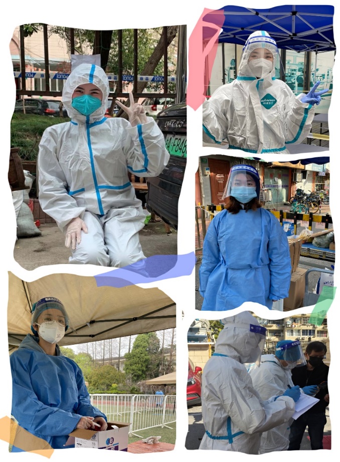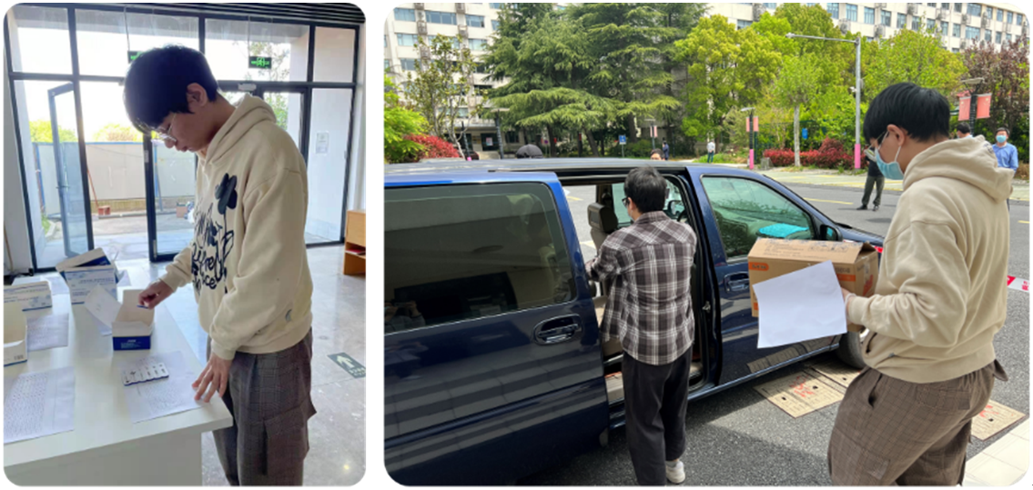 校外,中法学生党支部师生党员积极响应“双报到”号召,支部党员均完成“先锋上海”线上报到,他们冲锋在前、逆行而上协助居委落实社区各项防疫工作。支部党员沈佳妮白天负责线下抗原、物资分发,晚上负责线上统计,她表示“社区虽小,但每一位居民都自觉遵守规定,这使社区工作非常顺利,我们坚信抗疫必胜。”支部党员夏辰协助居民完成扫码登记,帮助年老居民解决难题并解答防疫问题,维护核酸检测站点的秩序,主动为抗击疫情奉献青春力量,以实际行动践行新时代大学生的责任和担当。
