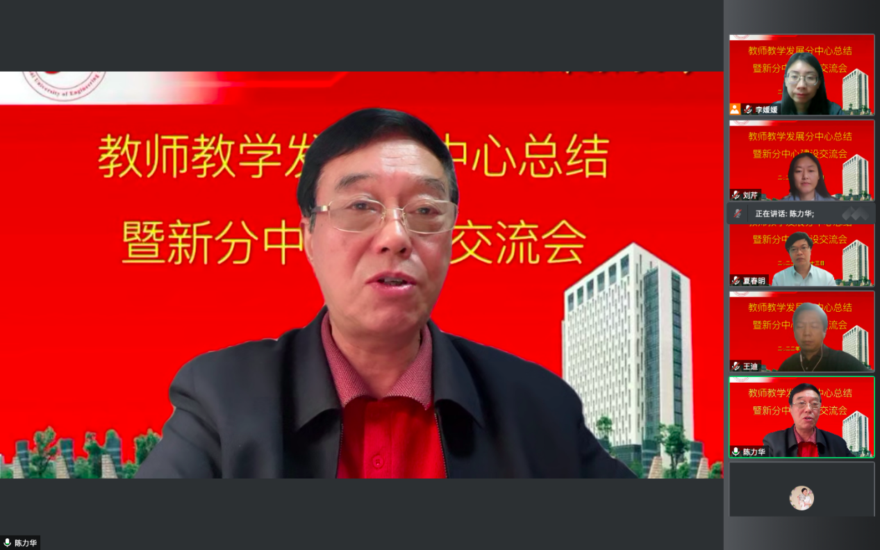 教学督导组组长陈力华教授对各教发分中心开展的各类教师培养工作进行了点评。围绕校老教授协会课题《青年教师教育教学现状分析及应对策略研究》对学校教师教学现状提出了“完善教师发展制度,教学科研协调发展”等进一步深化的策略。他强调教师的任务是教学育人、立德树人,通过加大对教师综合能力的培养,使教师成为受益者,进而提高教学质量,最终保障学生学习效果。