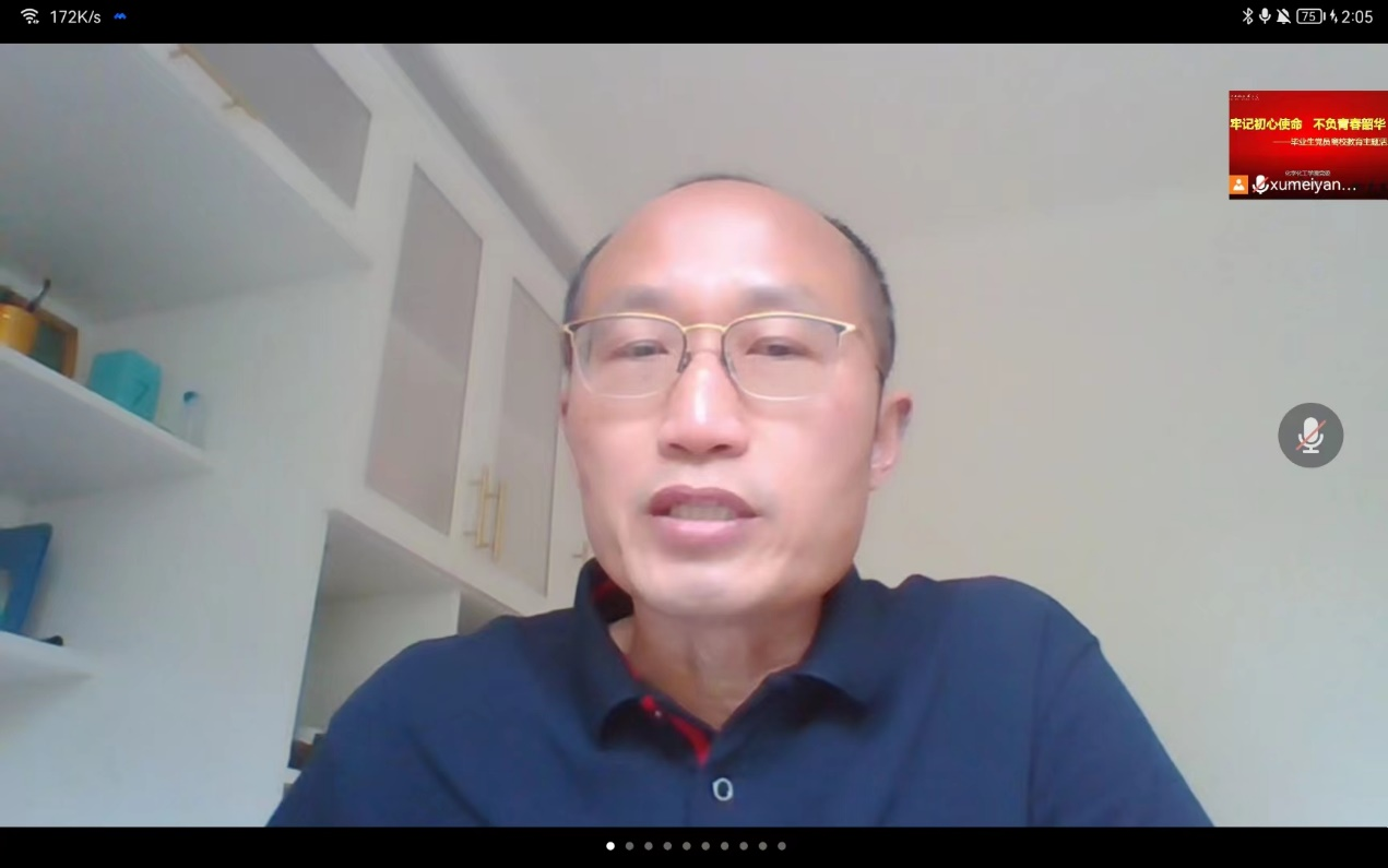 为进一步强化毕业生党员的身份意识,引导毕业生党员坚定理想信念,勇担时代重任,5月14日下午,化学化工学院党委在线开展“牢记初心使命,不负青春韶华”毕业生党员离校教育活动。学院党委书记宋勤健,学院关工委常务副主任卢柏龙,党委副书记秦颖,党委组织员、学生党支部书记和全体毕业生党员出席会议,会议由学院党委副书记秦颖主持。