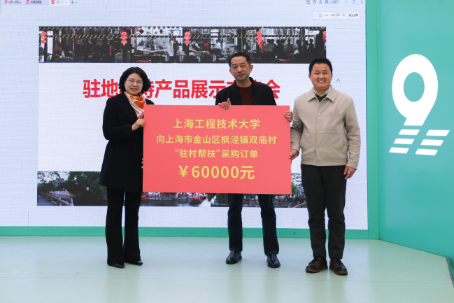 会上,朱晓青代表学校党委感谢金山区委、枫泾镇党委及双庙村党总支对我校驻村干部的指导。她表示,在驻村工作的牵线搭桥下,上海工程技术大学党委与双庙村党总支正式结对,既是贯彻落实习近平总书记关于乡村振兴重要指示精神的具体行动,也标志着学校与双庙村携手推进乡村治理、共促城乡融合踏上新征程。朱晓青指出,学校党委将以驻村帮扶为平台,深入贯彻落实城乡结对要求,以双庙村为基点,辐射枫泾、服务金山,共同绘就产业兴旺、生态宜居、治理有效、生活富裕的乡村振兴图景,为加快城乡融合发展贡献校地智慧与力量。朱晓青代表学校党委,建议从三方面进一步加强校地合作:一是坚持党的领导,以强有力的组织引领凝聚形成驻村结对帮扶的强大合力;二是坚持目标导向,以发展壮大村集体经济为目标帮扶乡村产业提质增效;三是坚持人才共育,以科研成果转化落地实现校地协同发展共赢。