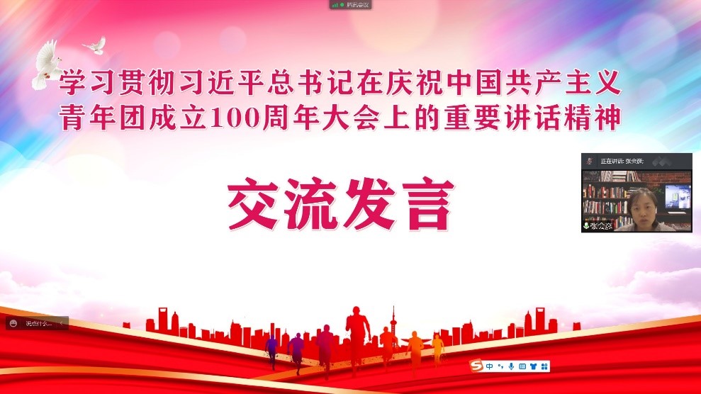 联合党委钱慧敏书记以“不负殷切期望 为培养更多新时代好青年贡献力量”为主题,从五个方面全面领学了习近平总书记重要讲话的内容,带领青年师生回顾了中国共产主义青年团的历史和不同历史时期青年人的铮铮力量,解读了共青团和青年工作历史经验。结合学校发展工作要点和疫情防控期间的身边人身边事,强调了学院青年工作的要点和新时代青年的担当与作为,为青年师生今后的工作指明了方向,即立足学校发展和疫情防控,立足岗位实际和自身的优势,用青年的奋斗不息书写青春的华丽篇章。