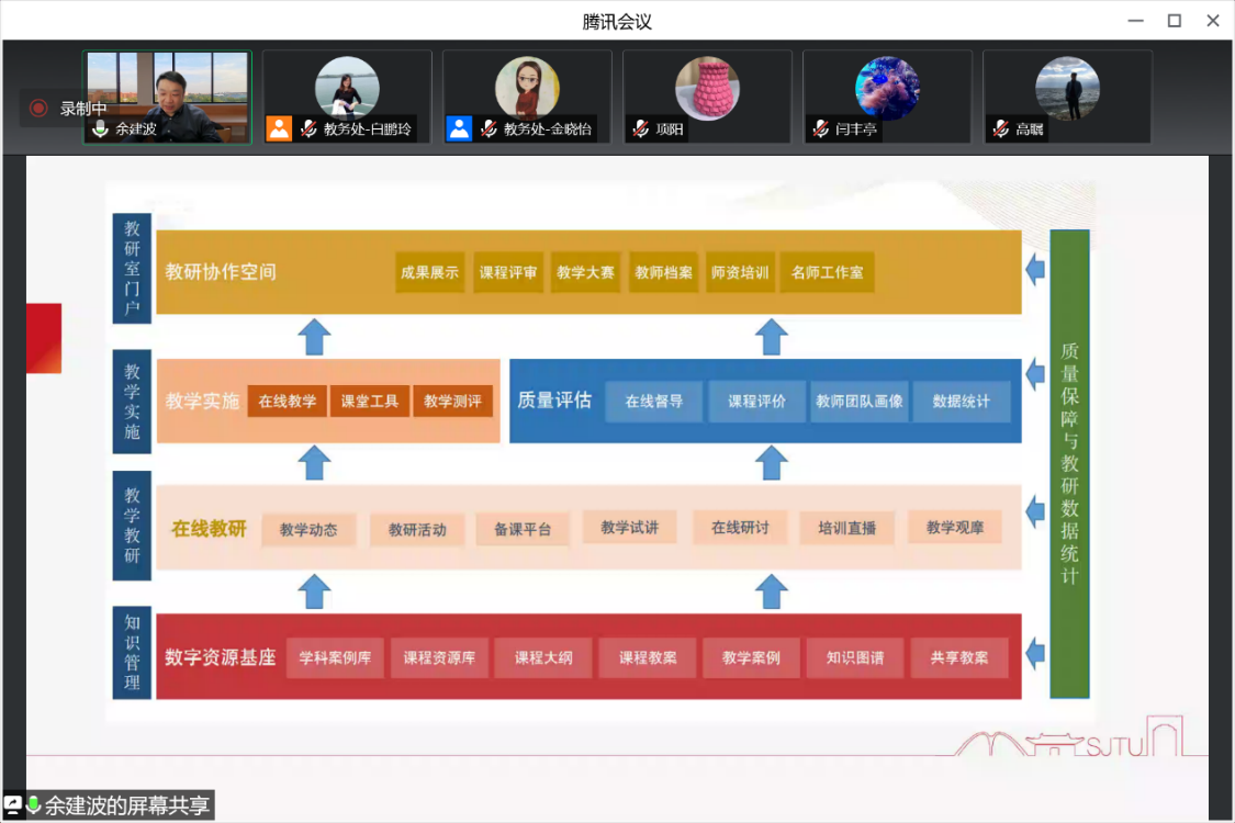 为帮助广大教师深刻理解线下、社会实践一流课程的内涵,做好校级、市级、国家级线下、社会实践一流课程培育建设申报工作,推进我校虚拟教研室建设,5月18日下午,学校通过腾讯会议召开线下、社会实践一流课程建设及虚拟教研室建设培训会,特邀上海交通大学教务处在线课程建设负责人余建波老师做专题报告。我校市一流、市重点课程负责人及团队成员,2020-2022年各类课程建设项目负责人及团队成员165人,教务处相关人员参加了本次培训会。培训会由教务处处长陈浩主持。