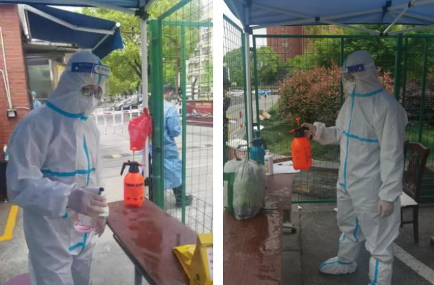 冷培榆老师积极响应上级“要到一线去,要到基层去”号召,接到上级通知后,第一时间参与到曲阳路街道曲二居委会抗疫工作中,与一同下沉社区的党员组成曲二战“疫”临时党支部,并建立了秩序维护、巡逻劝导、快递转运、楼道消杀、应急机动5个小组,精细化推进各项工作。冷培榆老师担任应急机动组组长,分发物资、组织核酸检测、解决居民问题等。