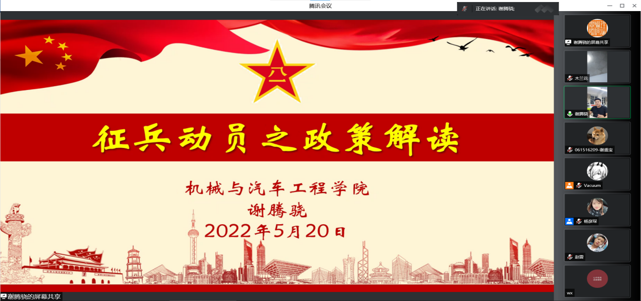 针对学院本届毕业生中有入伍意愿的学生和家长,围绕“军营淬火锻造文武双全 有志青年领航未来风帆”主题,学院武装工作负责人谢腾骁老师就征兵入伍的相关政策、报名要求、入伍流程进行解读分享,鼓励毕业生们携笔从军保家卫国,在军旅中实现人生梦想,建功立业。