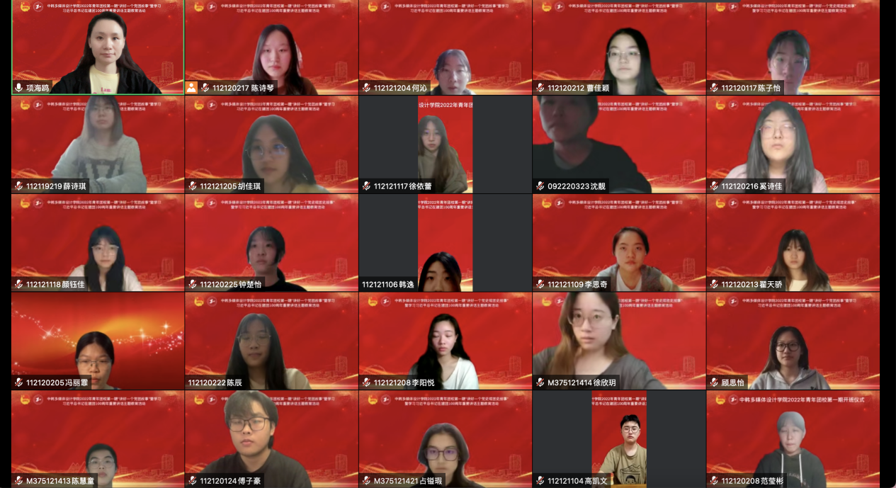 5月28日,中韩多媒体设计学院开展“百团知百年”“讲好一个红色故事”主题演讲暨学习习近平总书记在庆祝中国共产主义青年团成立100周年大会上的讲话主题教育活动。本次大会通过腾讯会议召开,学院团委书记项海鸥老师,各团支部代表,以及中韩学院2022年青年团校第一期培训班所有成员出席活动。本次活动由本次青年团校培训班班长陈诗琴主持。