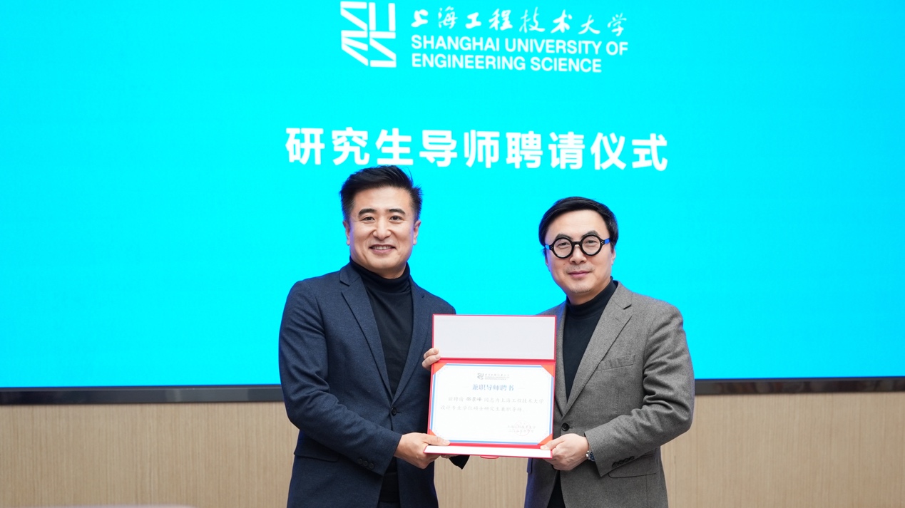 娄永琪向邵景峰颁发我校设计专业学位硕士研究生导师聘书,标志着我校在设计教育与产业实践领域的校企合作迈上新台阶。