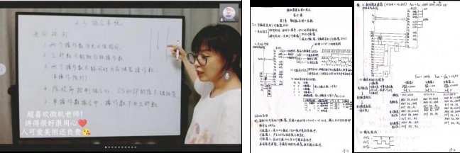 电子电气工程学院黄丽老师积极参与线上教学,认真准备。在《微机原理及接口技术》理论课在线授课过程中,用白板、摄像头和三脚架凑齐了一套可以媲美线下教学的设备。通过这样的教学方式,数学公式、重点难点可以通过手写一步一步展示推导过程。此外,黄丽老师每节课还贴心地准备了直观详实的教学讲义,讲义中手绘清晰的知识结构框架图便于学生理解知识点和课后复习,获得了督导专家、同学们的一致好评。