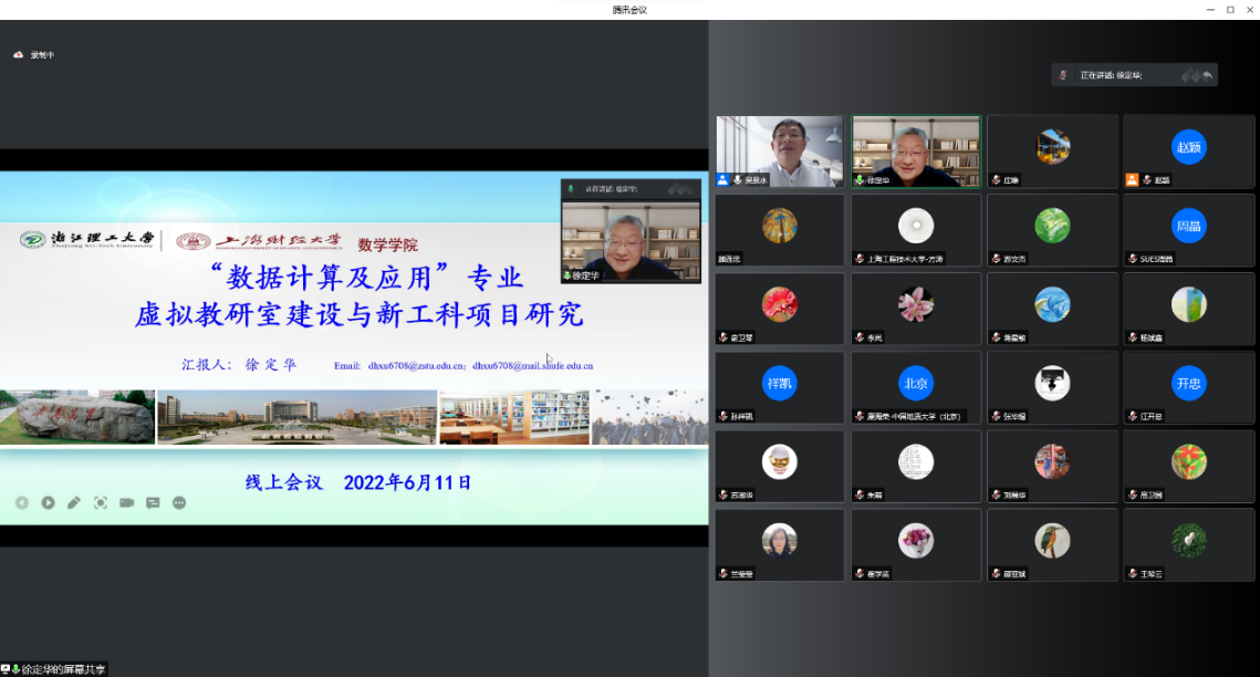 6月11日,教育部“数据计算及应用专业国家虚拟教研室”建设启动会暨新工科项目研讨会线上会议召开。我校发展规划处(高等教育研究所)处长、数理与统计学院院长殷志祥教授,人事处处长刘福窑教授,数理外国语联合党委许伯生副书记,数理与统计学院副院长王国强教授,统计与数据计算系全体教师参加会议。我校在“数据计算及应用专业国家虚拟教研室”的申报、组建及推进方面做了积极的贡献,被列为“数据计算及应用专业国家虚拟教研室”建设工作小组的核心单位。
