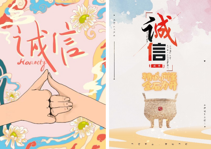 学院以学生资助为契机,策划开展了诚信海报设计征集活动,引起了同学们的积极关注和参与,新颖的构图和独特的创意展示了同学们对诚实守信的多维理解与阐释,收到了良好的教育效果。