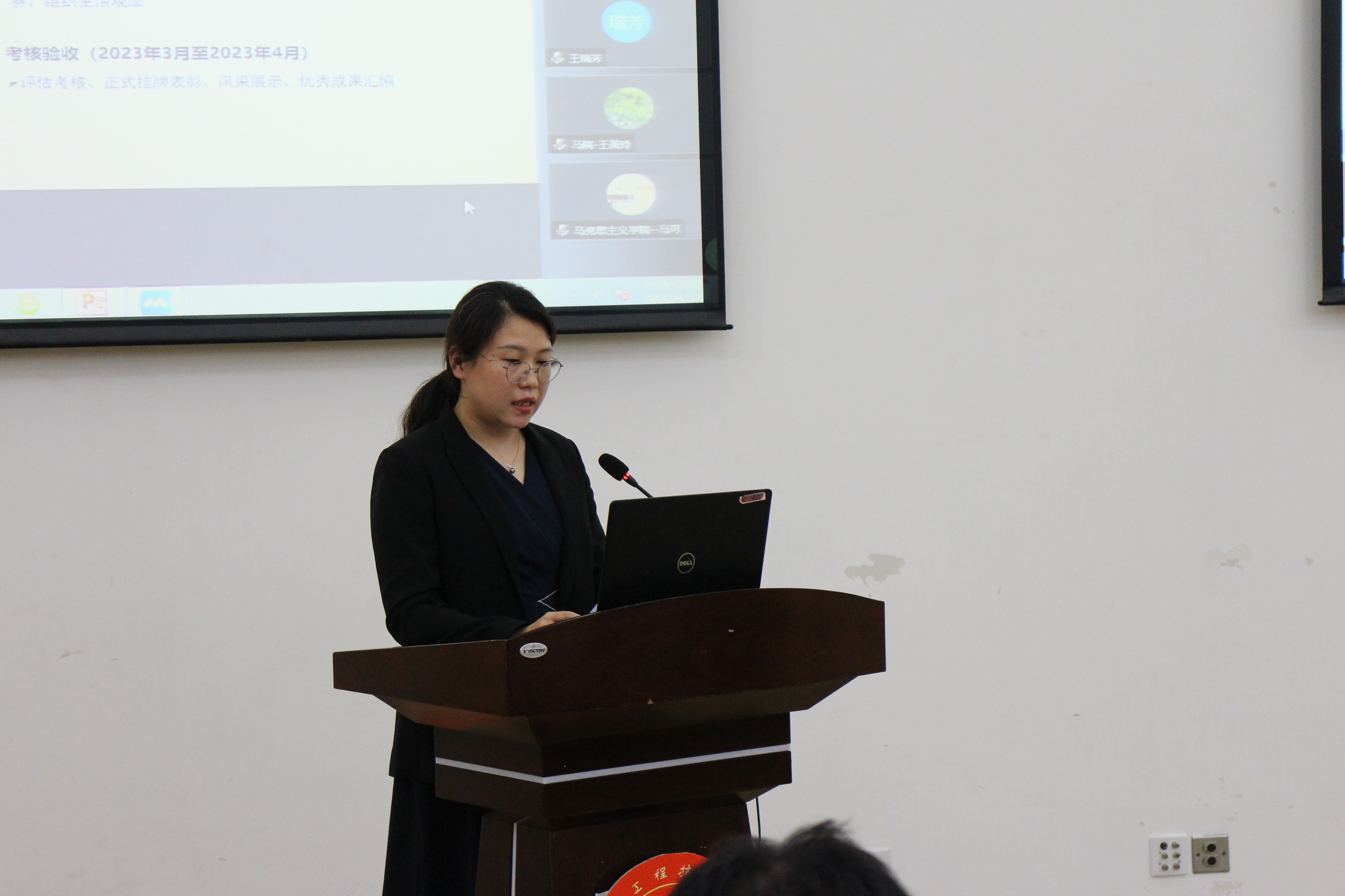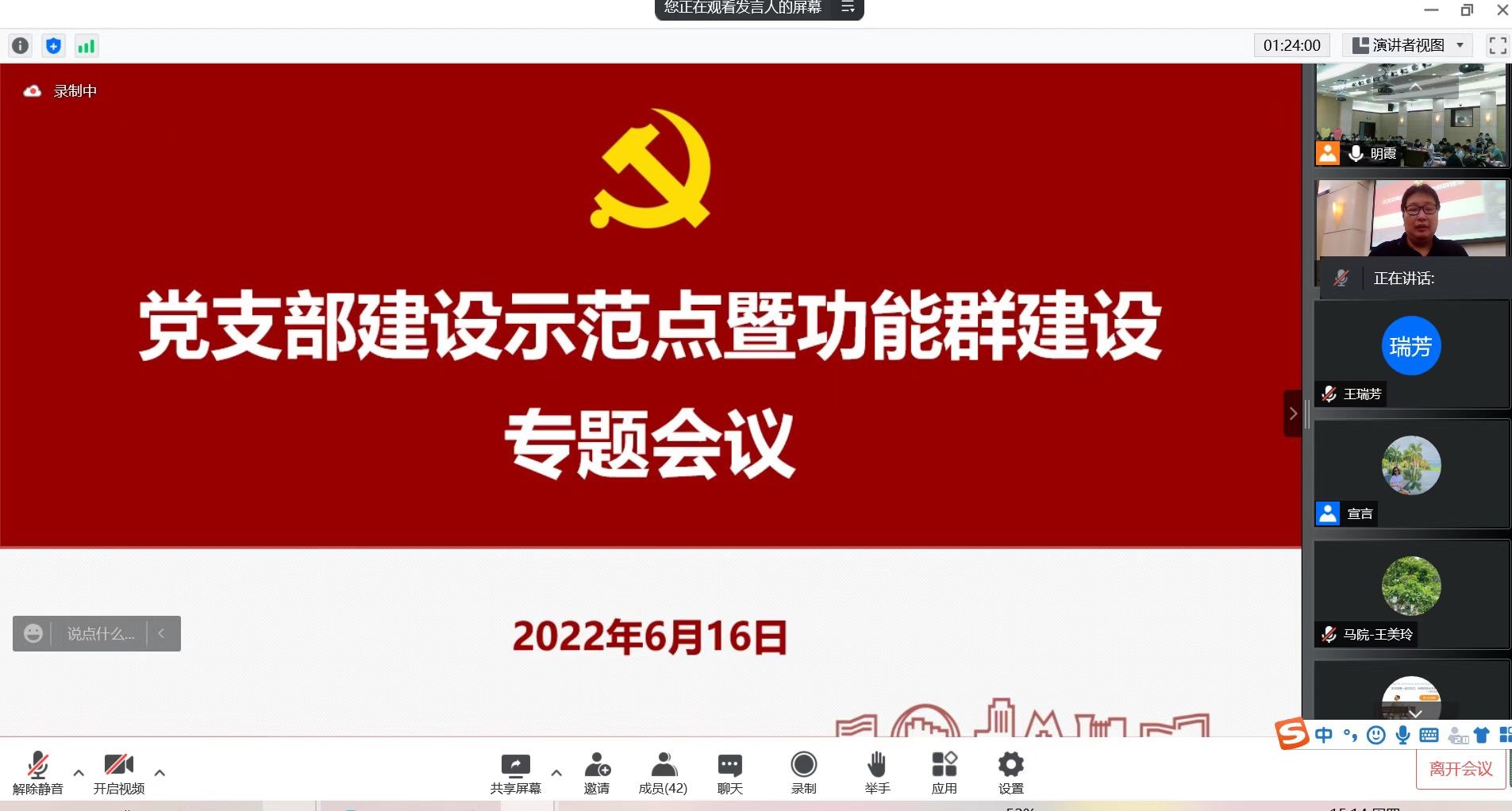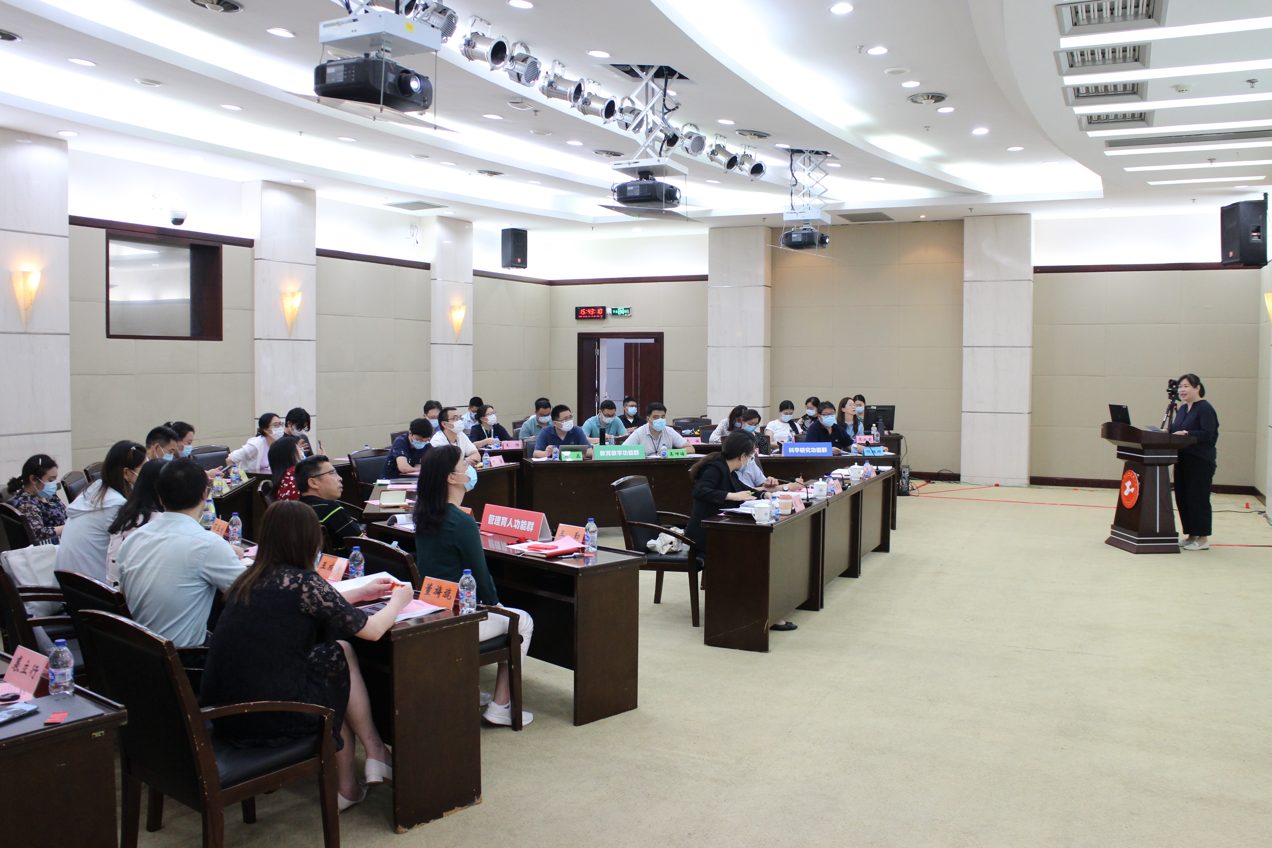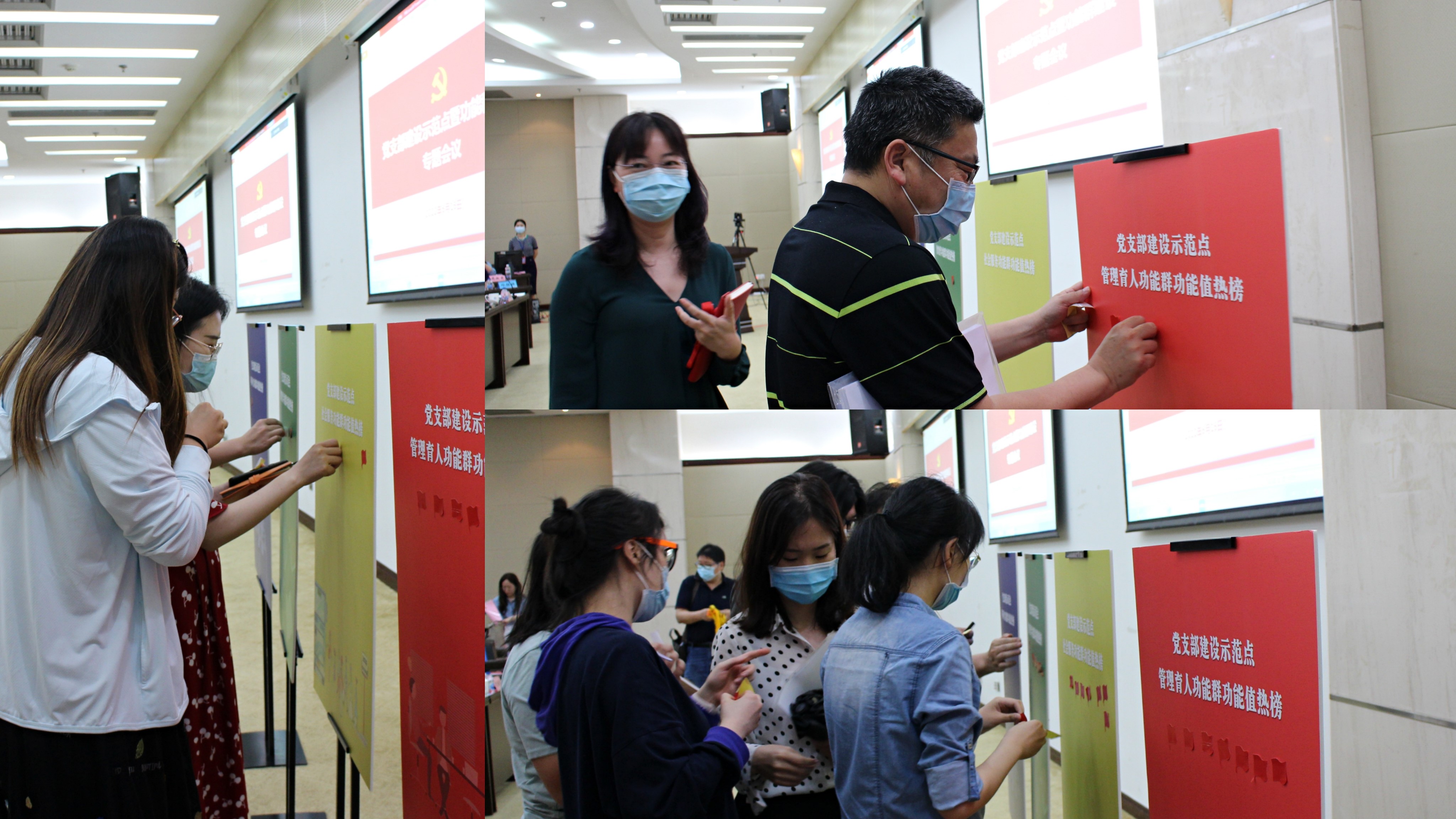 会议以视频的方式展示了学校“党支部建设示范点”建设中各功能群的组建过程、推选群主情况及各党支部的风采。所有参会人员分别以线上线下的方式对功能群进行了评价。