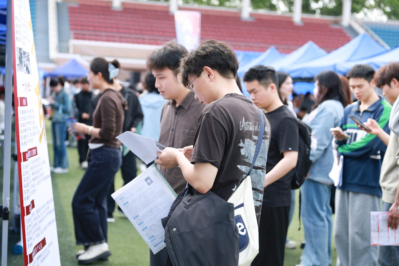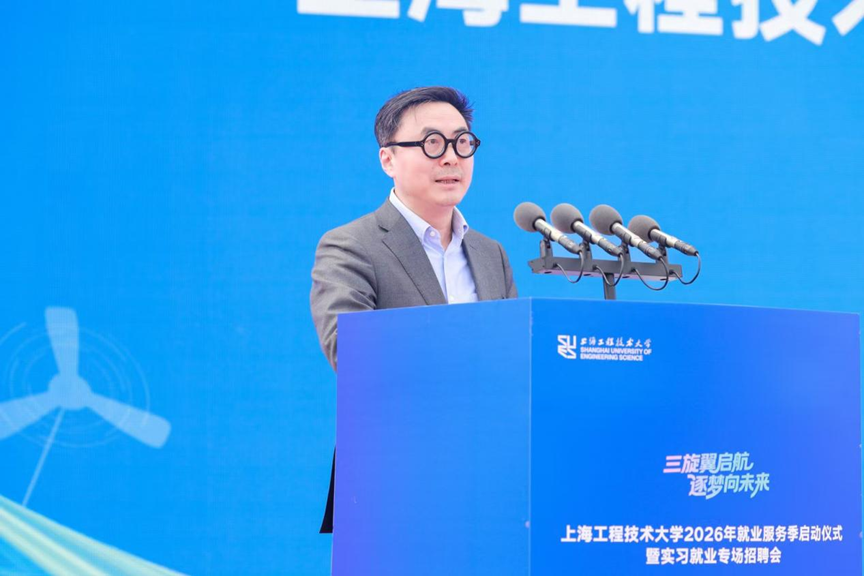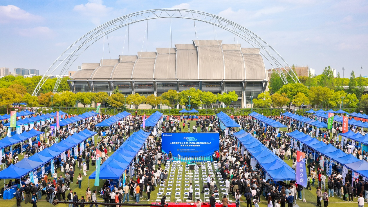 为深入贯彻落实党中央、国务院、市委市政府就业工作要求,力促我校毕业生更加充分更高质量就业,4月15日下午,由上海市教育委员会、上海市就业促进中心、松江区人民政府指导,上海工程技术大学与松江区人社局主办,上海市各区人社局、各地在沪商会等联合主办的“三旋翼启航 逐梦向未来”2026年就业服务季启动仪式暨实习就业专场招聘会在上海工程技术大学松江校区西体育场举行。