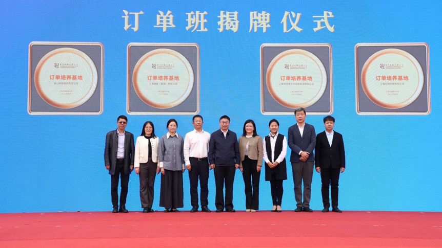 王岩松与订单班校企双方代表共同揭牌“订单培养基地”