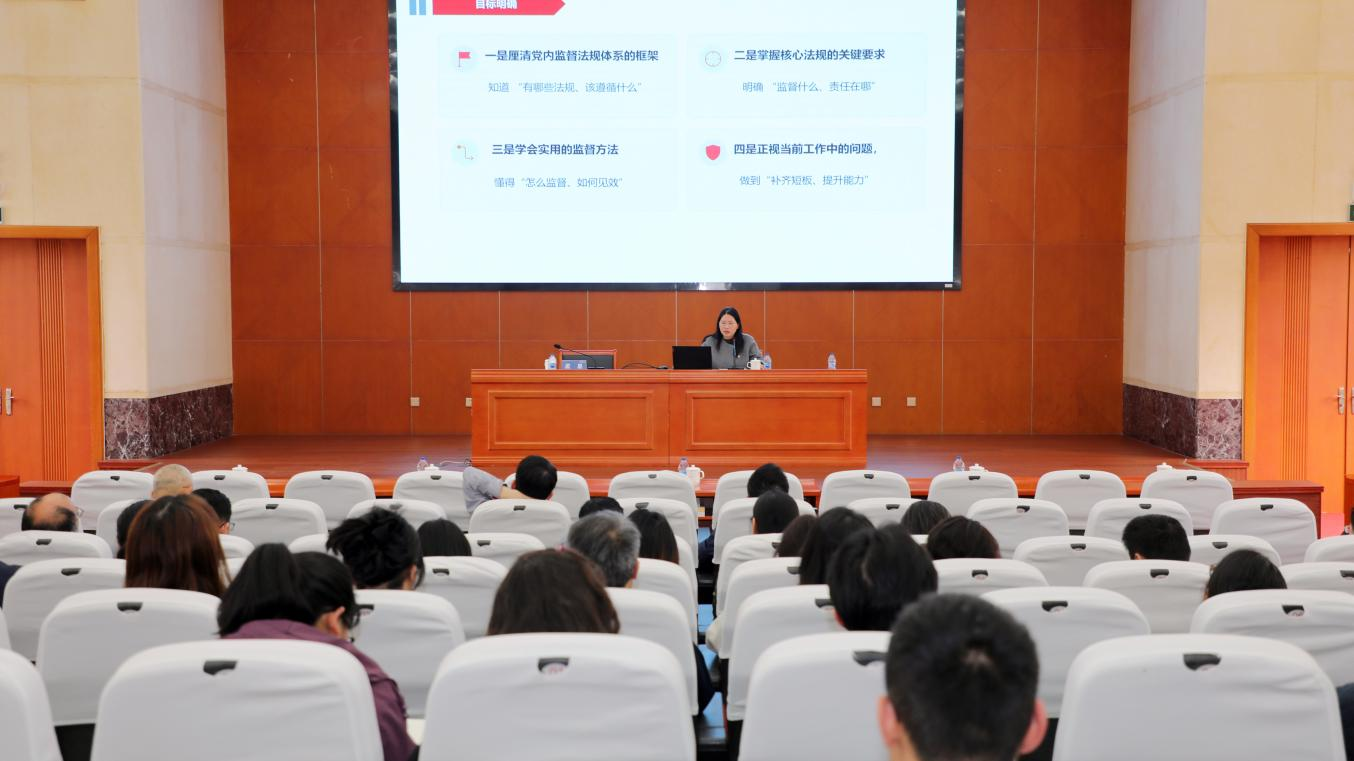 段海霞同志作《党内监督法规体系及监督方法解析》的专题授课,从党内监督法规体系框架及核心要义、常用监督方法及实操要点、2026年纪检监察重点工作三个维度对参训对象进行业务辅导。