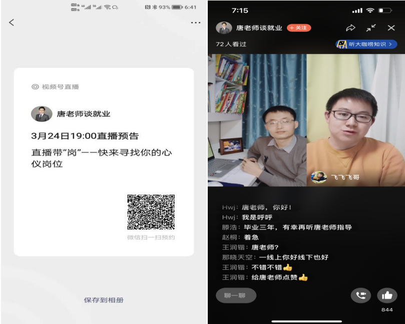 创新工作思路,直播就业岗位。受新一轮疫情等因素的影响,2022届毕业生就业工作异常严峻,在就业工作面临重重困难下,唐全老师开通了“唐老师谈就业”直播带岗视频号,积极挖掘就业市场相关岗位,在线为学生直播就业岗位,每周一次,帮助毕业生寻找心仪职位,得到了同学们的好评和点赞。