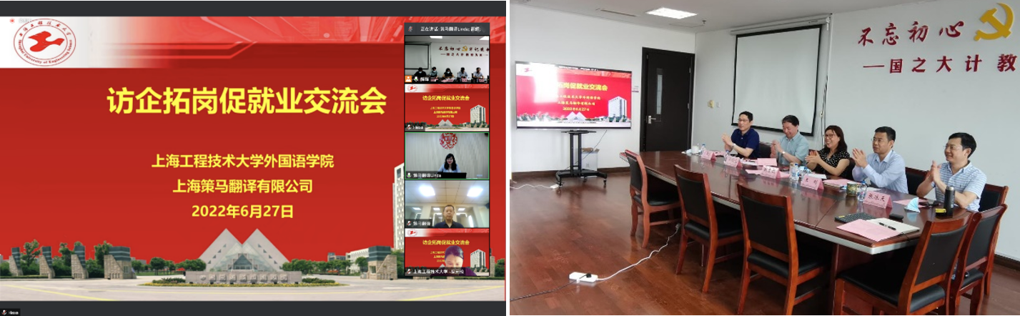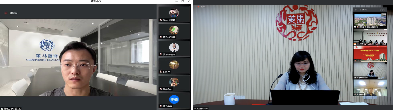 为进一步拓宽毕业生就业渠道,积极推进访企拓岗专项行动,完善校企合作交流平台。6月28日上午,外国语学院举办第六场访企拓岗促就业在线交流会,与上海策马翻译有限公司深入交流并签订合作协议。校党委副书记门妍萍在线参加交流会并指导学院就业工作。数理外国语联合党委书记钱慧敏,外国语学院院长王刚,数理外国语学院联合党委副书记许伯生,外国语学院副院长张冰天、刘金龙,翻译系、党政办、学办老师参加会议,交流会由钱慧敏书记主持。