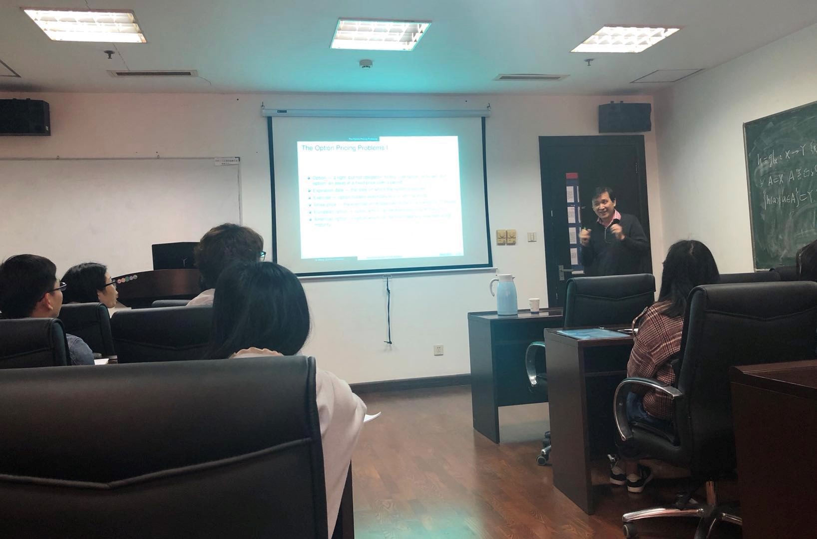汪崧教授首先讲述了实物期权的发展历程及其基本概念。其次,汪教授重点讲解了扩展的期权定价模型。接着,汪教授分享了复合期权定价模型、欧式期权定价及评价偏微分方程的有限体积法。最后,汪教授给出了看涨及看跌期权定价模型的数值实验结果,并就该领域的进一步研究作了探讨和展望。汪教授的报告不仅为广大听众带来了期权定价模型的最新研究成果,而且开阔了大家的视野和思路。报告结束后,汪教授与参加讲座的青年教师和研究生就期权定价与最优化等领域的国际前沿和热点问题做了深入的交流与探讨。