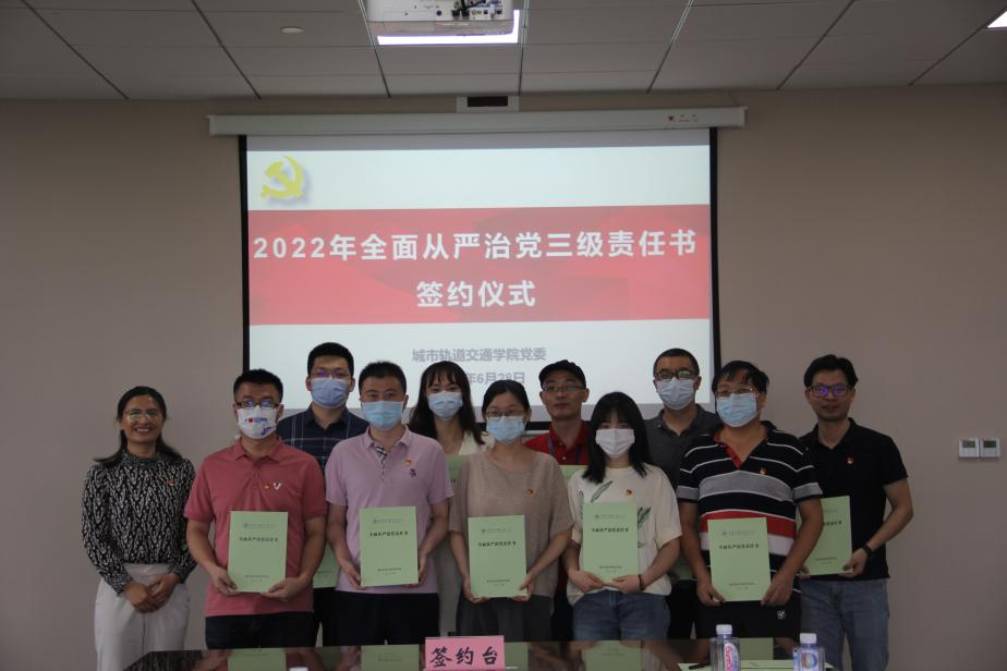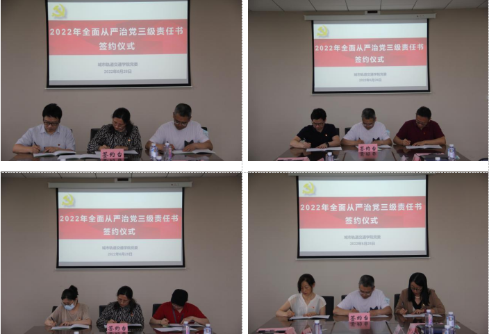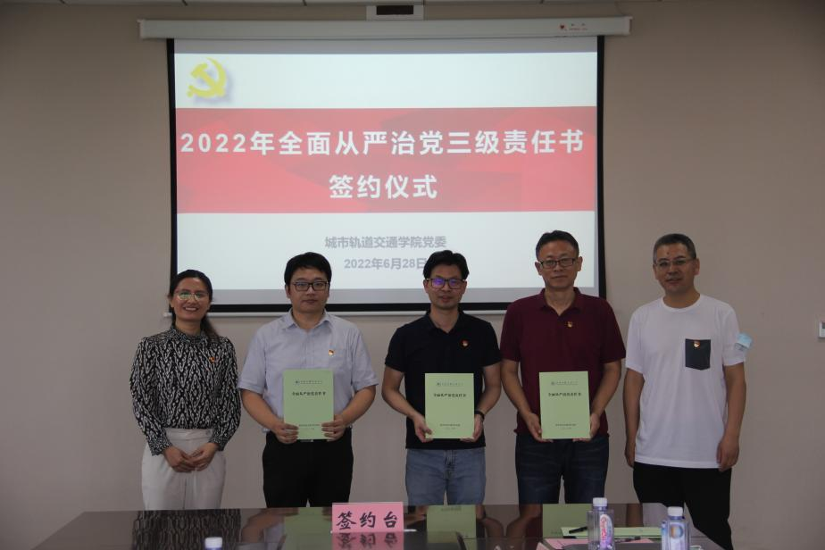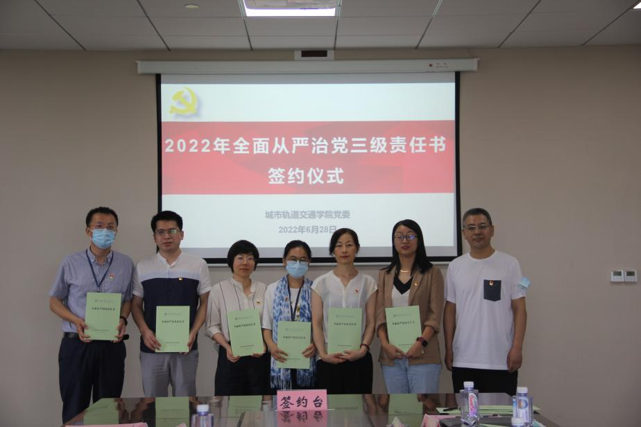 会上,学院全体党政领导班子、工会主席、各系室主任、全体支部书记签署了《城市轨道交通学院党委2022年全面从严治党责任书》。