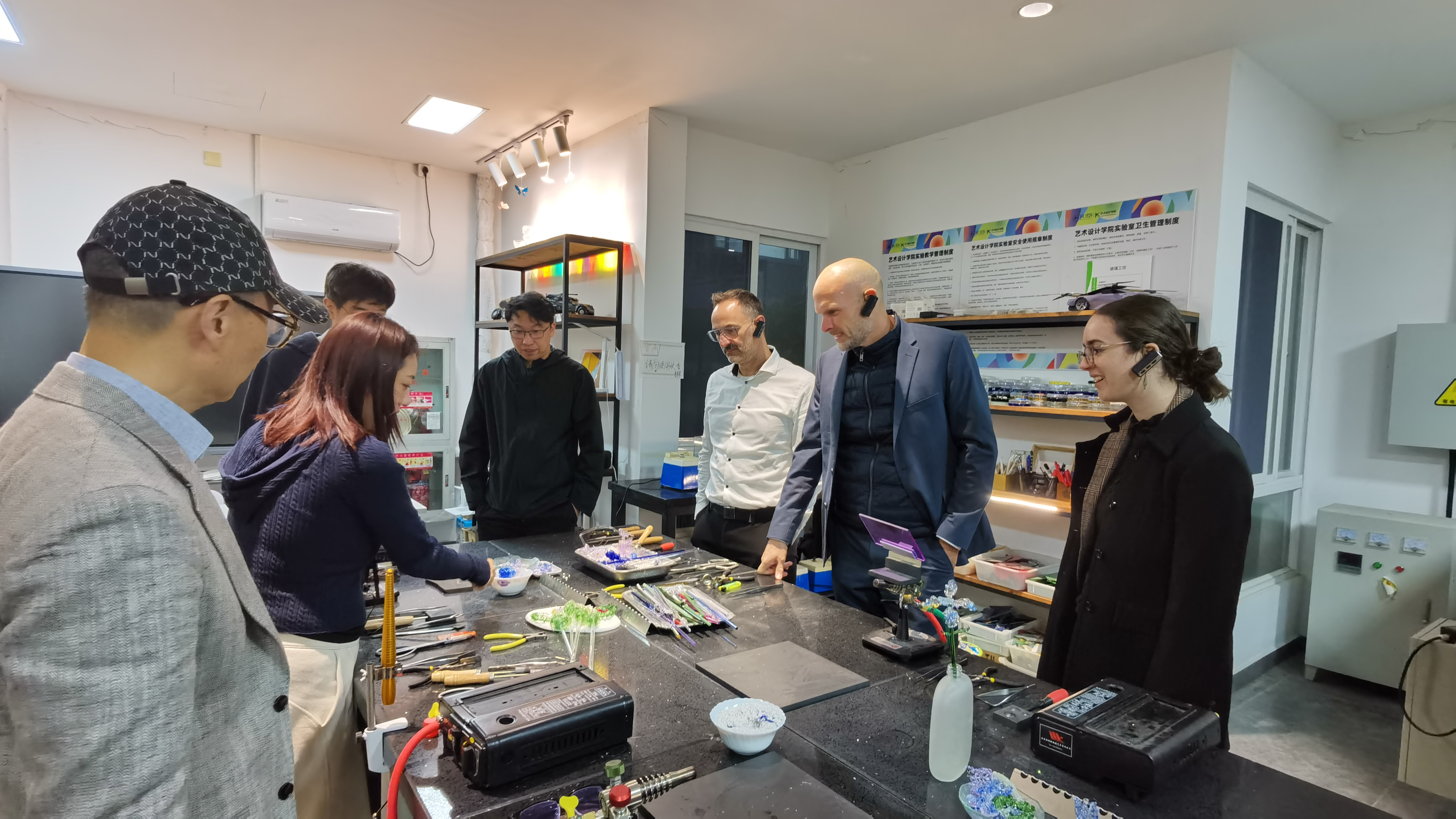 工业设计专业ASIIN认证工作于2024年9月正式启动。在学校统筹推进与各部门协同支持下,专业严格对照国际认证指标,围绕培养目标、毕业要求、课程体系、教学资源、质量保障与持续改进等核心维度进行系统优化提升。2025年11月3日至4日,德国ASIIN认证专家组莅临学校开展线下实地考察,通过座谈交流、现场听课、材料审核、实验实训平台查验等方式,对专业建设成效给予充分肯定。