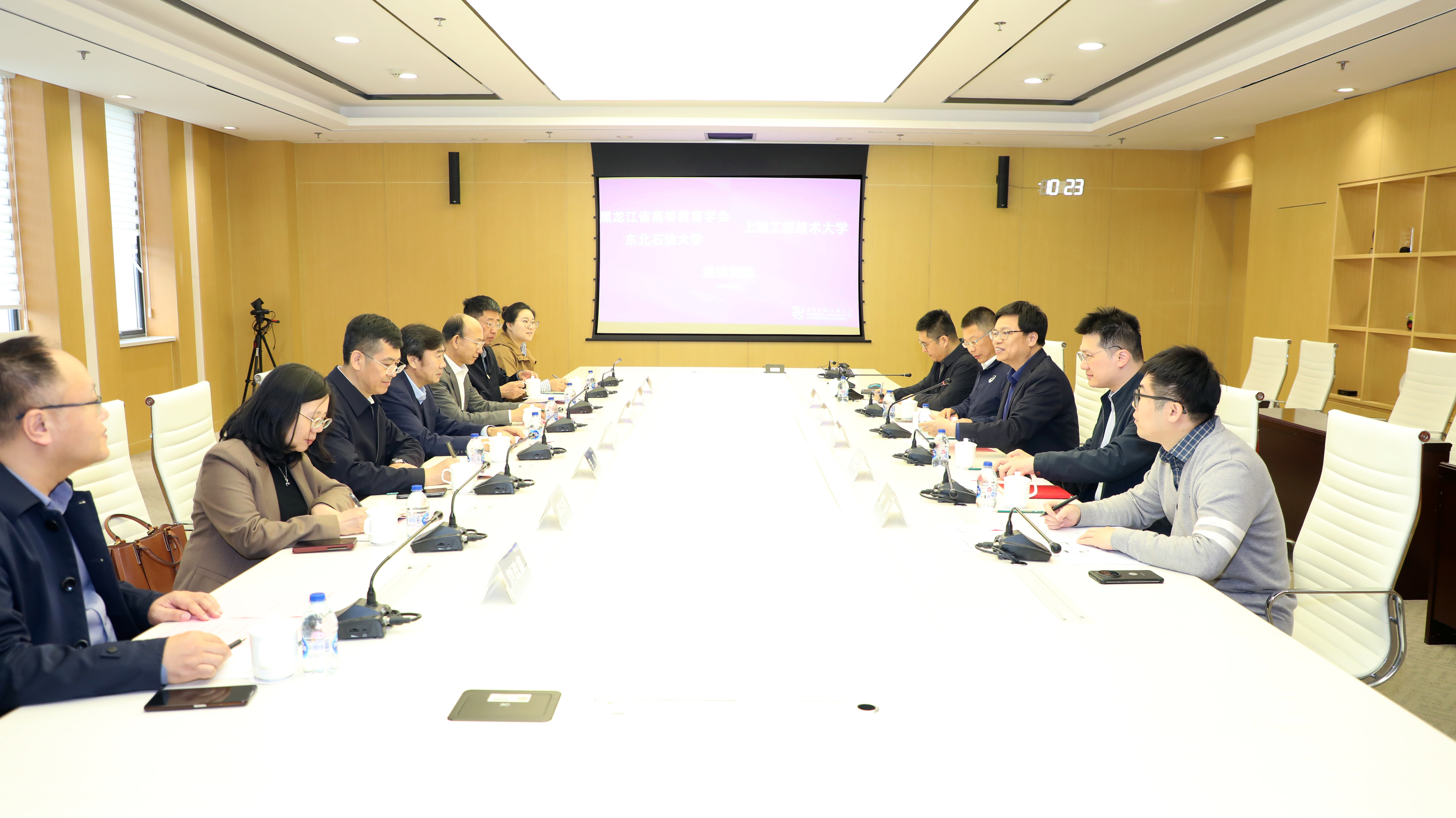 4月21日上午,黑龙江省高等教育学会会长赵国刚、常务副会长丁哲学,东北石油大学副校长李伟一行来校调研。上海工程技术大学党委书记贺莉、副校长夏春明接待了赵国刚一行,相关职能处室和学院负责人参加座谈交流会。