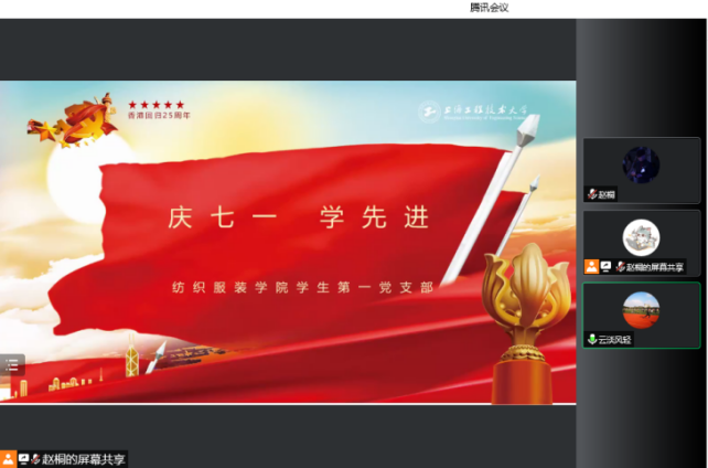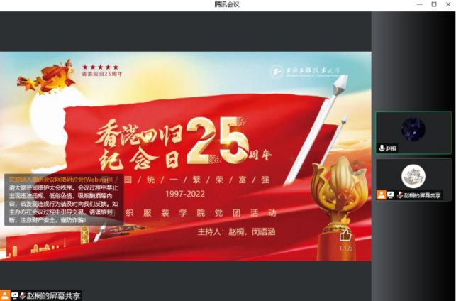 为贯彻落实习近平总书记在庆祝香港回归祖国25周年大会暨香港特别行政区第六届政府就职典礼的重要讲话精神,切实做好青年大学生的思政教育工作。纺织服装学院于7月1日集中开展了“香港回归25周年 祖国统一 繁荣富强”及“庆七一 学先进”主题党团日活动。学院带训辅导员及全体参训学生参加活动。活动紧扣中国共产党成立101周年和香港回归25周年的重大历史主题,引导同学们在军训期间深入开展党史学习,深刻理解党的百年奋斗光辉历程,筑牢“听党话、跟党走”的思想根基,赓续红色基因,传承爱国情怀。