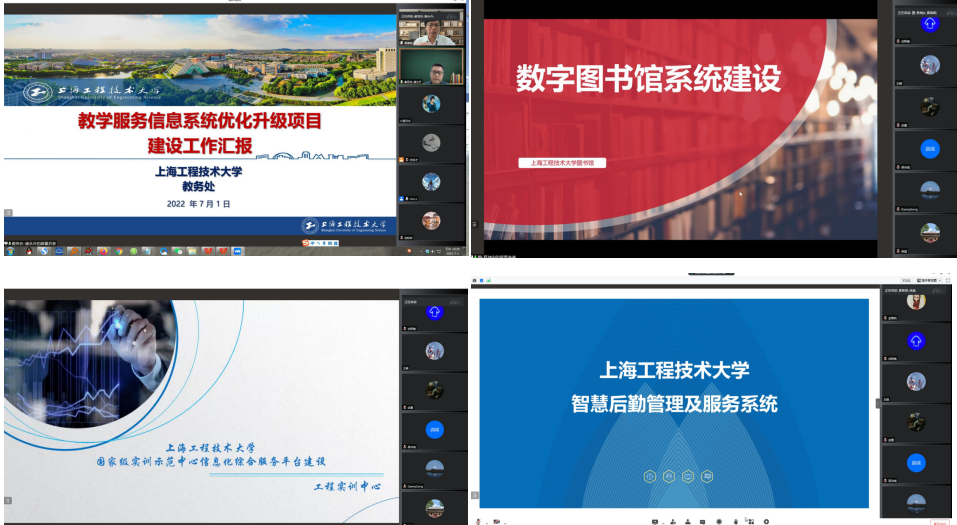 教务处副处长唐永升、后勤实业发展中心徐益、工程实训中心王斌涛、图书馆焦坤分别介绍了“教学管理信息系统全面升级与一体化综合平台建设项目”“上海工程技术大学智慧后勤管理及服务系统”“国家级实训示范中心信息化综合服务平台”和“数字图书馆系统”等4个信息化项目,大家逐一介绍项目主要功能、项目计划、目前完成的主要工作、存在的不足以及需要校领导协调解决的问题等。