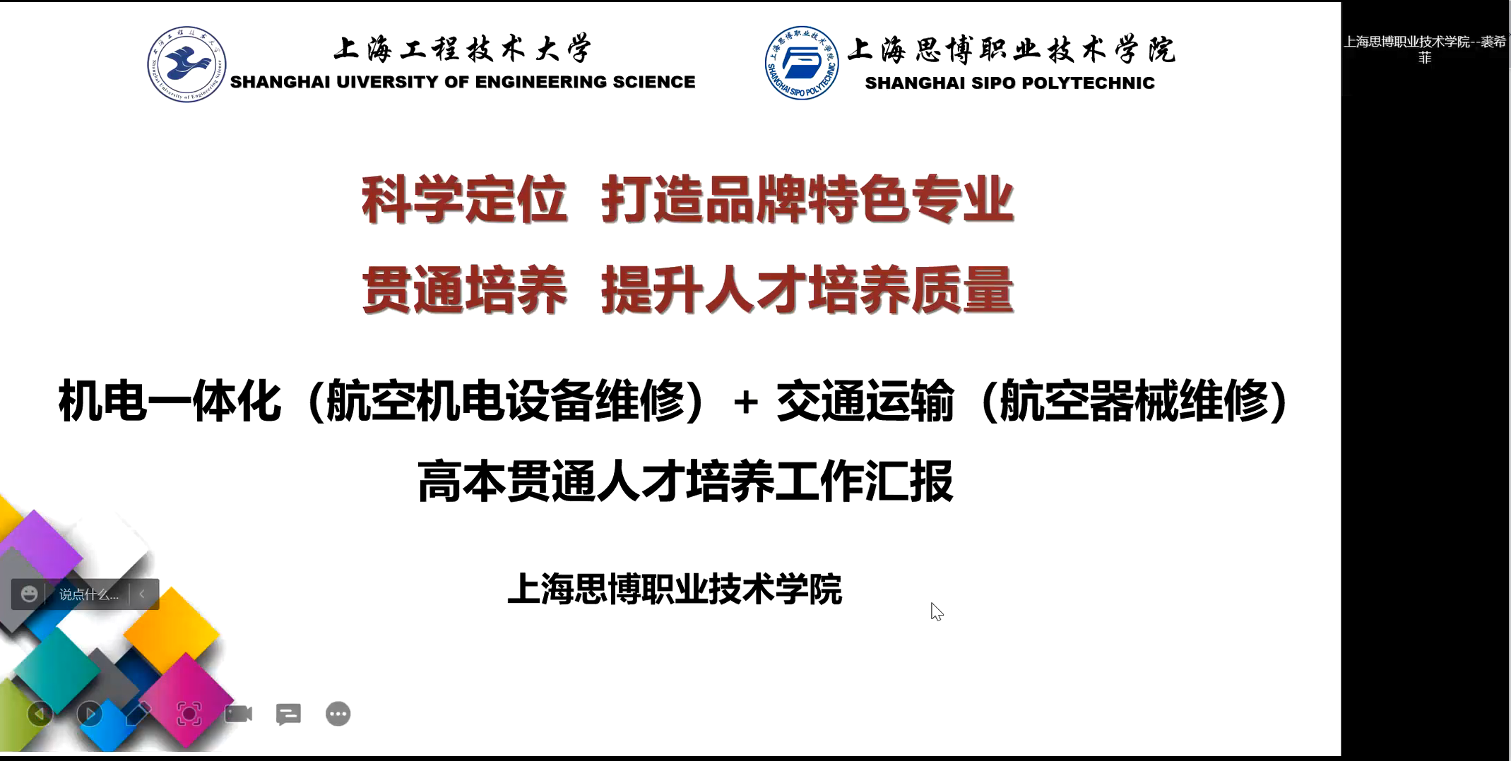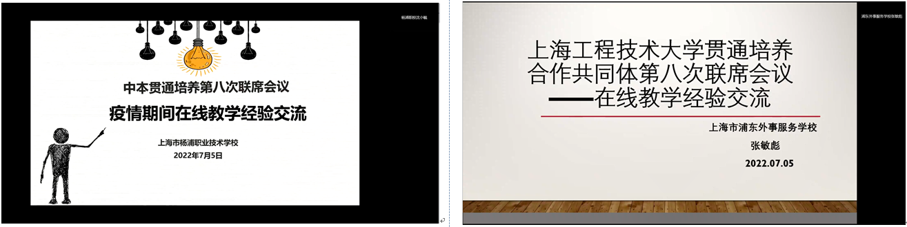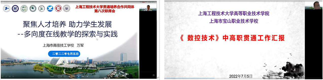 4月20日,十三届全国人大常委会通过了新修订的《中华人民共和国职业教育法》,新修订的《中华人民共和国职业教育法》中提出“坚持目标导向,着力健全完善现代职业教育体系,推动职业教育高质量发展”。为进一步完善我校贯通培养管理机制,2022年5月,我校联合合作的中、高职校成立了上海工程技术大学贯通培养合作共同体,并印发校际管理文件。为进一步凝聚共识,7月5日,我校在线召开贯通培养合作共同体第八次联席会议,教务处陈浩处长、贯通培养基础课教学团队、贯通试点专业教学副院长、专业负责人,贯通培养合作的上海市高级技工学校、上海市宝山职业技术学校、上海市城市科技学校、上海工商信息学校、上海市杨浦职业技术学校、上海市浦东外事服务学校、上海思博职业技术学院、上海电影艺术职业学院8所中、高职校领导、专业负责人等50余人参加会议。会议由教务处唐永升副处长主持。