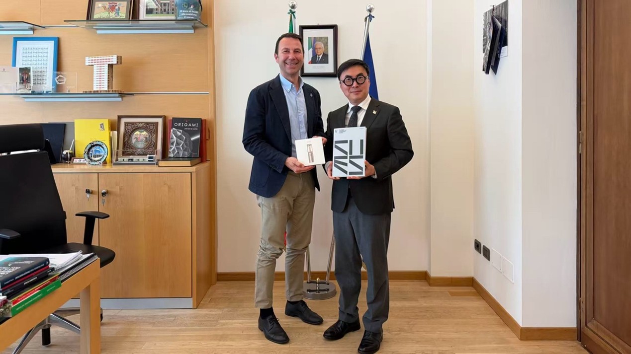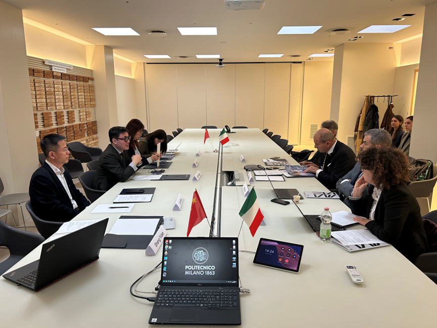 4月22日,代表团与米兰理工大学主管中国事务副校长Giuliano Noci等举行会谈。娄永琪介绍了学校发展情况,重点阐述了“三旋翼”人才培养模式,以及面向真实应用场景推进产教融合和创新人才培养的实践路径。双方围绕人工智能、机械工程、设计创新等领域合作进行了交流。同日,娄永琪还与米兰三年展博物馆主席Stefano Boeri举行了会谈。
