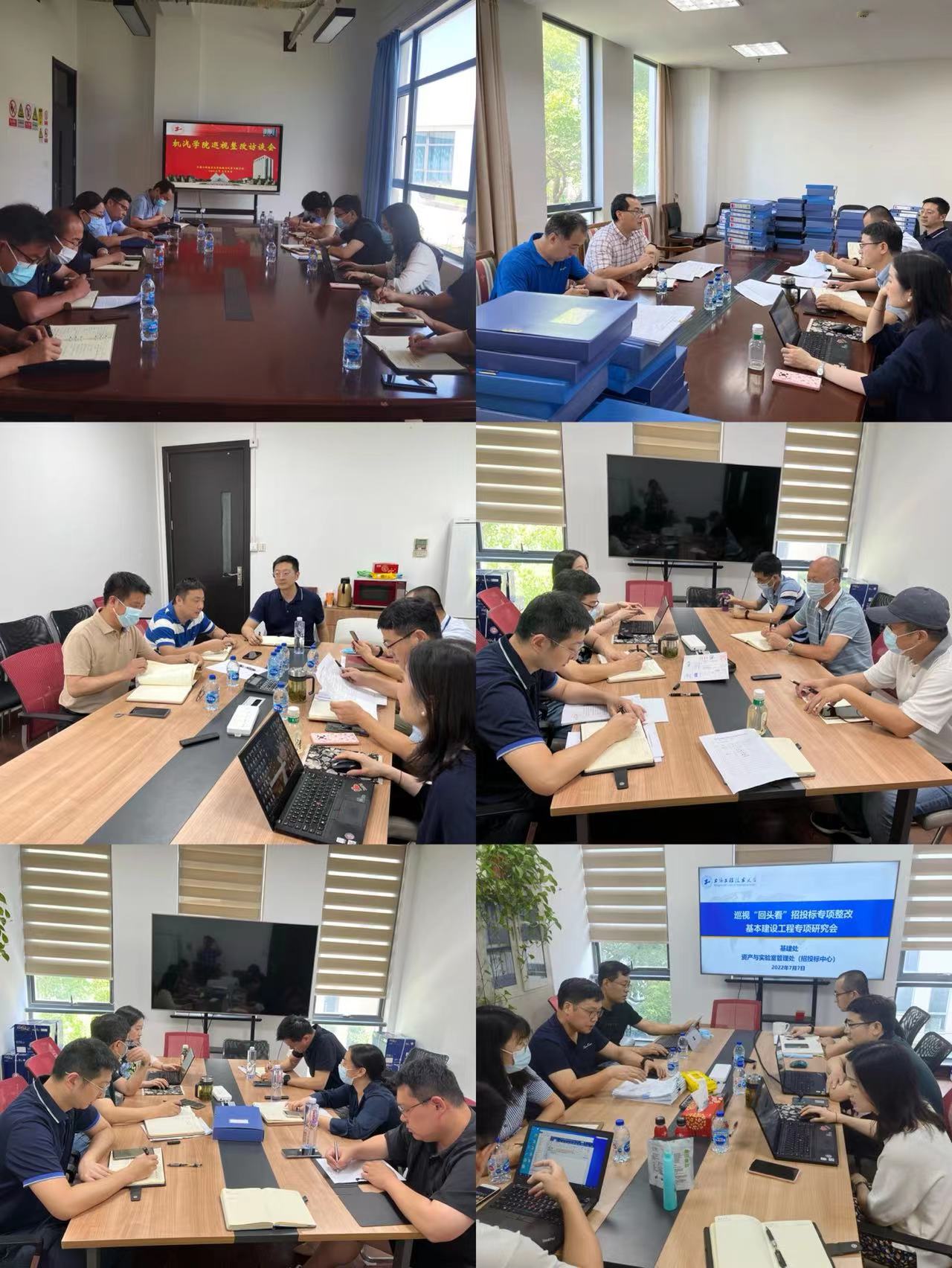 为落实巡视“回头看”整改要求,推动落实整改工作,7月4日至7月7日,资产与实验室管理处就巡视“回头看”招标采购有关问题分别与机械与汽车工程学院、后勤实业发展中心、信息化办公室、体育教学部、基建处召开整改工作研讨会。相关职能处室、部门负责人、项目负责人和采购工作人员参会,资产与实验室管理处处长张志刚主持会议。